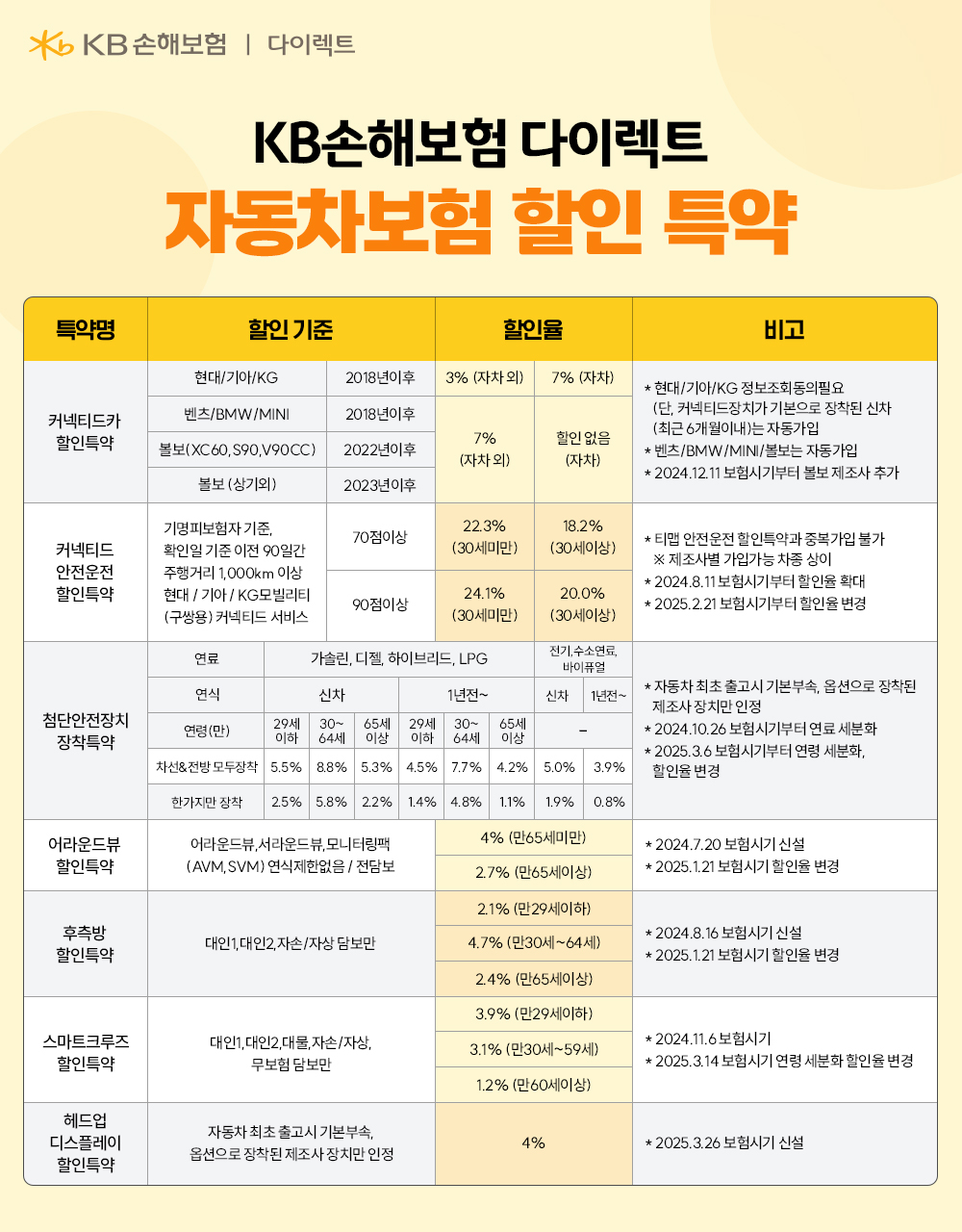 3년 이상 무사고 고객 주목! KB손해보험 다이렉트 자동차보험 3년 무사고 할인율 개편 2025. 09. 03 -